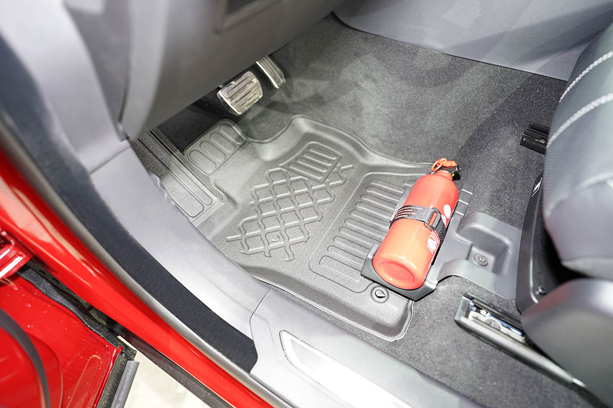 • saugus naudoti, nes prie grindų tvirtinama praktiška ir paprastai naudojama tvirtinimo sistema (pritaikyta pagal automobilio modelį), kuri važiuojant efektyviai išlaiko grindų įklotą jo vietoje;