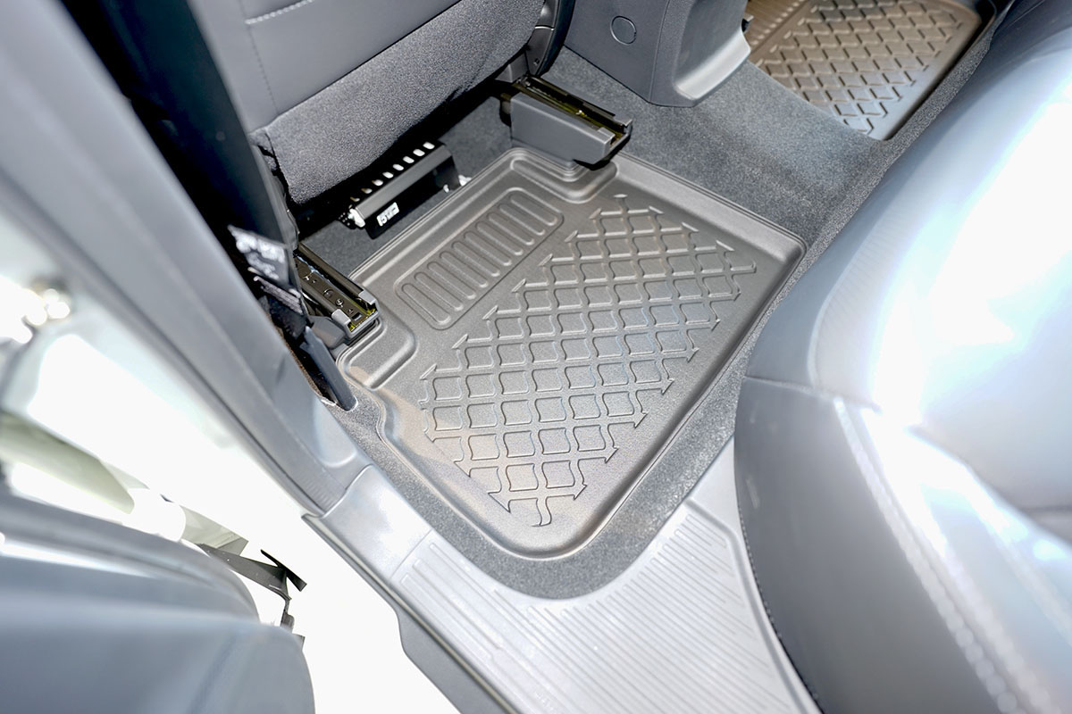 - saugus naudoti, nes prie grindų tvirtinama praktiška ir paprastai naudojama tvirtinimo sistema (pritaikyta pagal automobilio modelį), kuri važiuojant efektyviai išlaiko grindų įklotą jo vietoje;